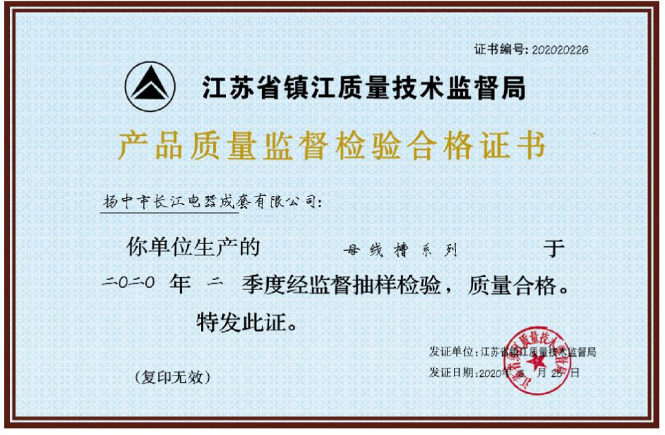 母線槽產品質量監督檢驗合