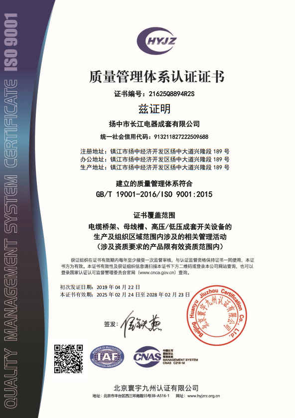 質量管理體系認證證書