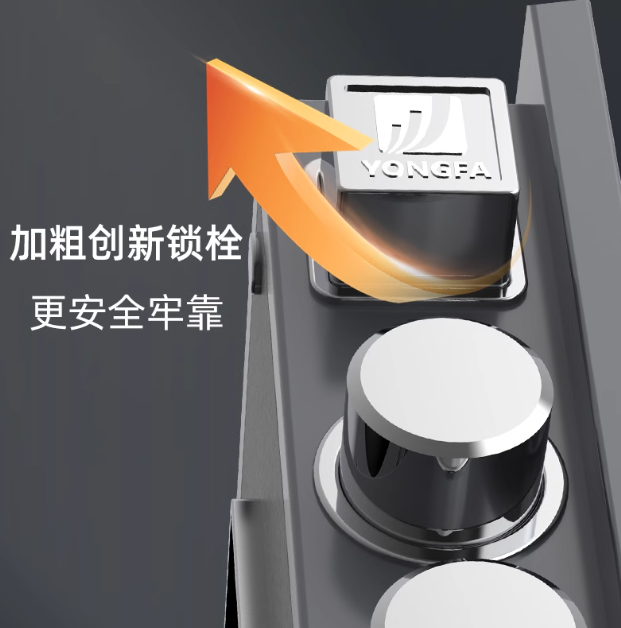 其一,專利鎖具與三面鍍鉻鋼栓形成“防鉆、防撬、防撥”三位一體防護(hù);