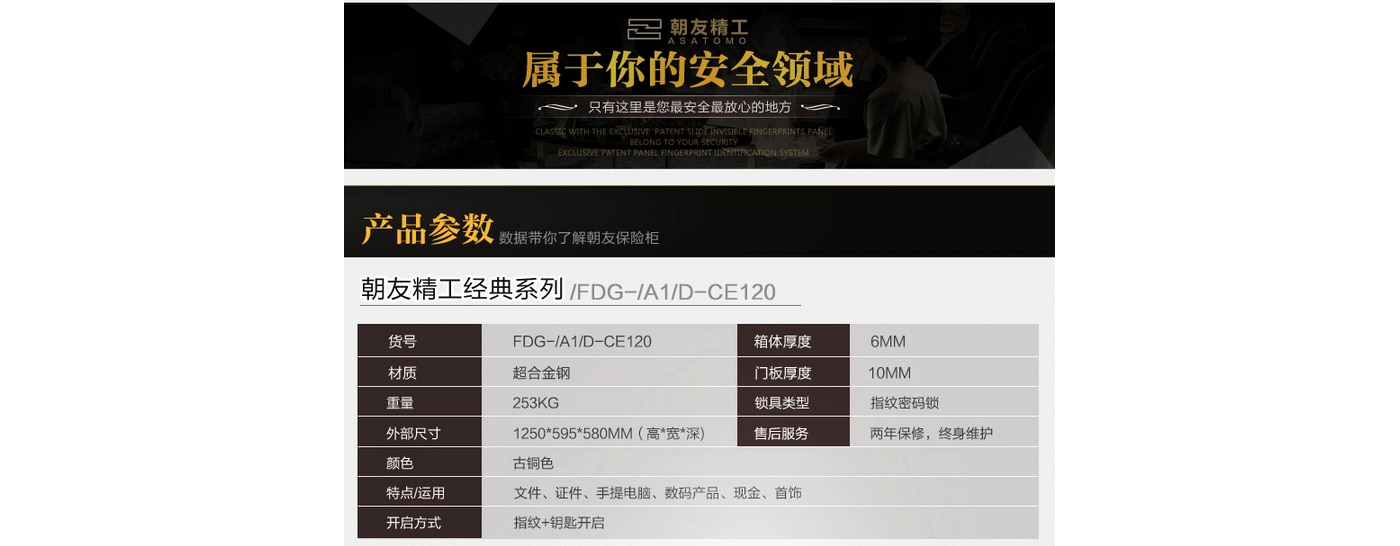永發(fā)旗下朝友CE120經(jīng)典指紋3C保險(xiǎn)柜尺寸說明:1250高*595寬*580深mm(含底座) 重量:253kg