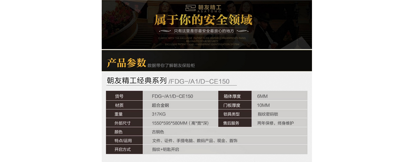永發(fā)旗下朝友CE150經(jīng)典指紋3C保險(xiǎn)柜尺寸說(shuō)明:1550高*595寬*580深mm(含底座) 重量:317kg