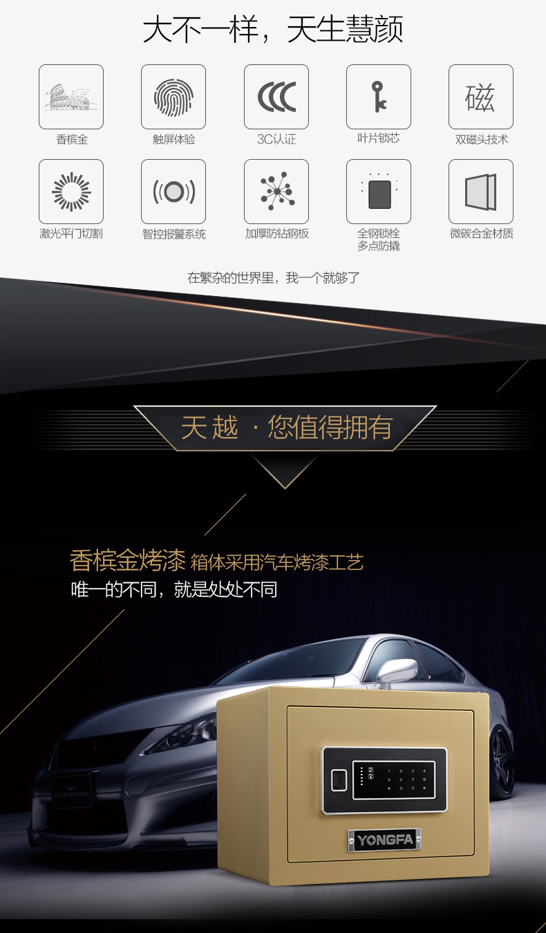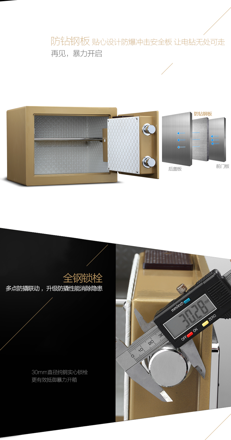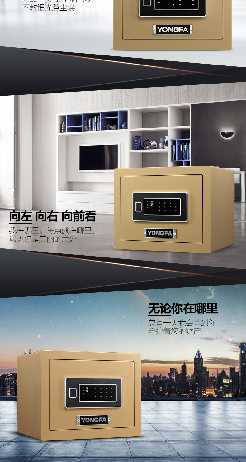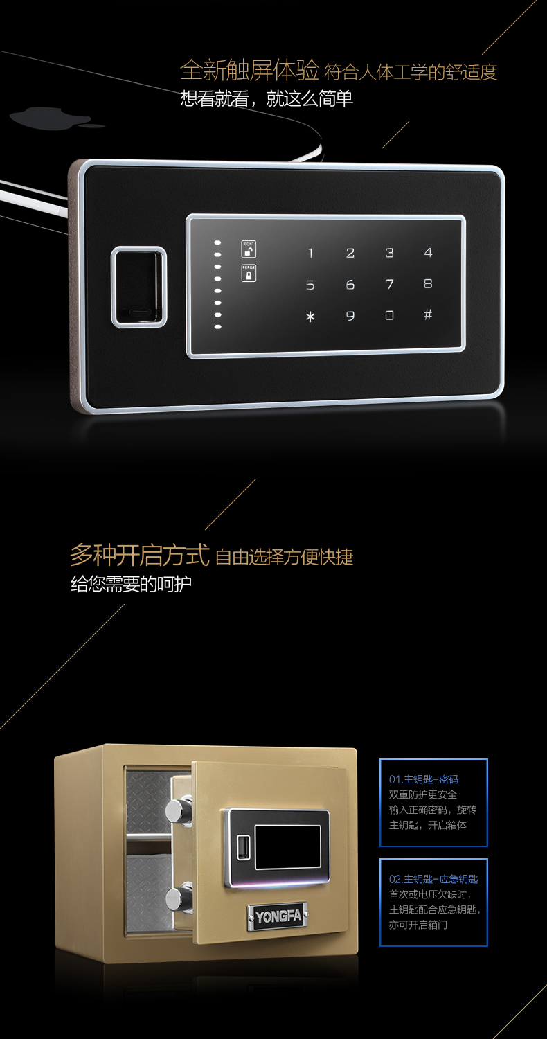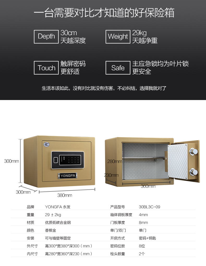 永發新品智瑞系列3C認證電子式保險柜30BL3C-09尺寸說明:300高*380寬*300深mm 重量:29kg