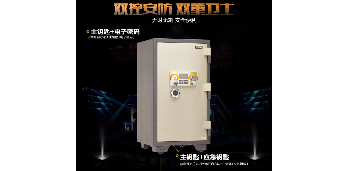 永發(fā)電子防火柜YB-920E尺寸說明:990高*600寬*610深mm(含底座) 重量:190kg