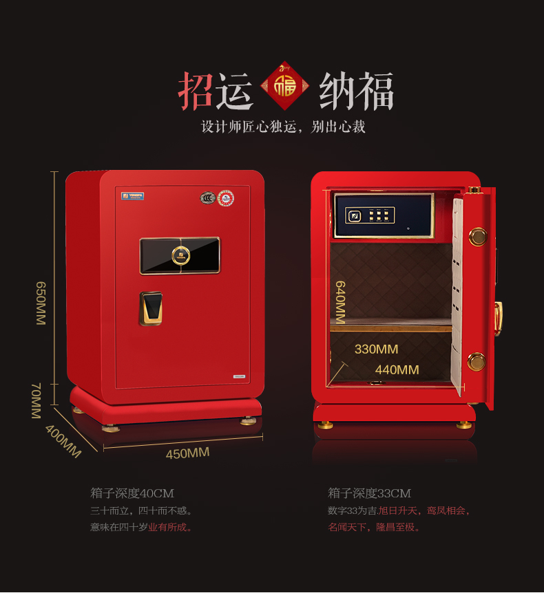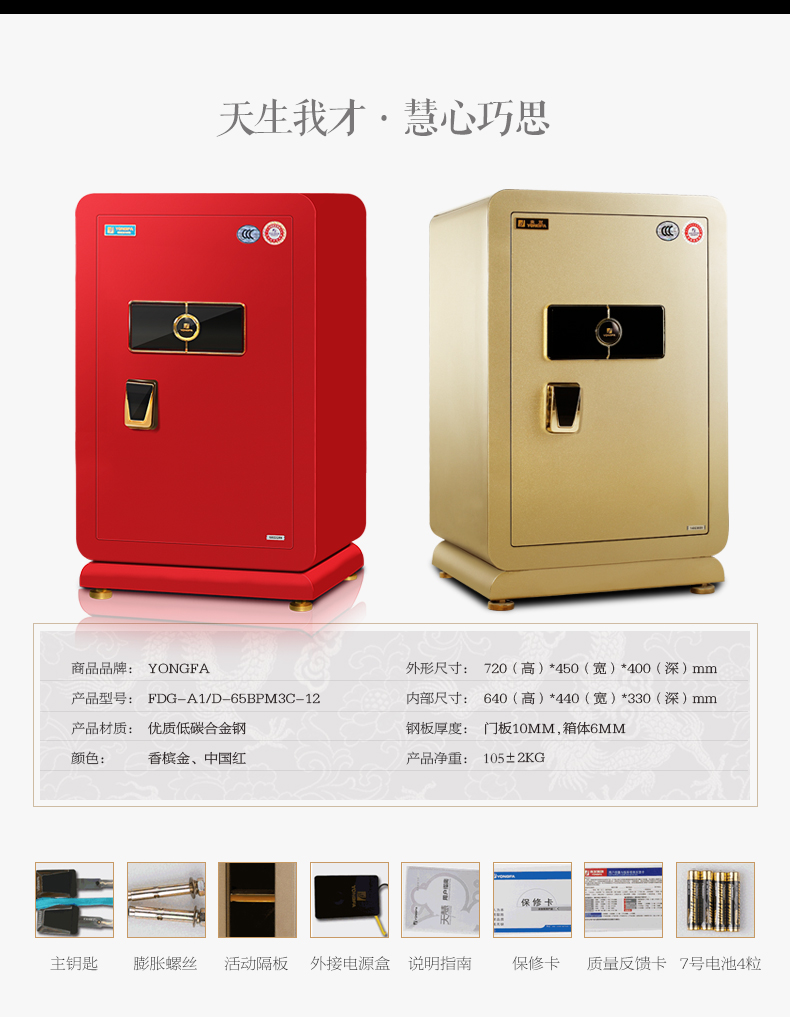 永發(fā)天慧系列指紋式3C保險(xiǎn)柜65BPM3C-12尺寸說明:720高*450寬*400深mm(含底座) 重量:105kg