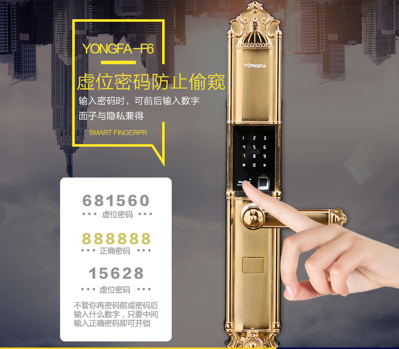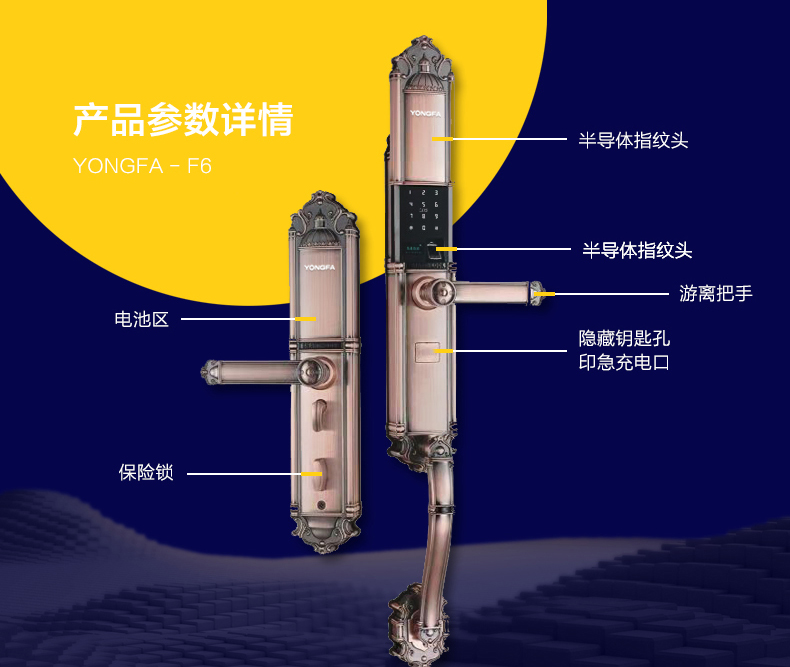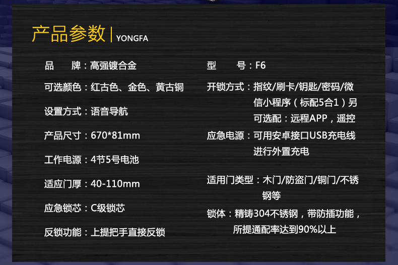 永發(fā)(YONGFA) 智能防盜門指紋鎖F6尺寸說明: