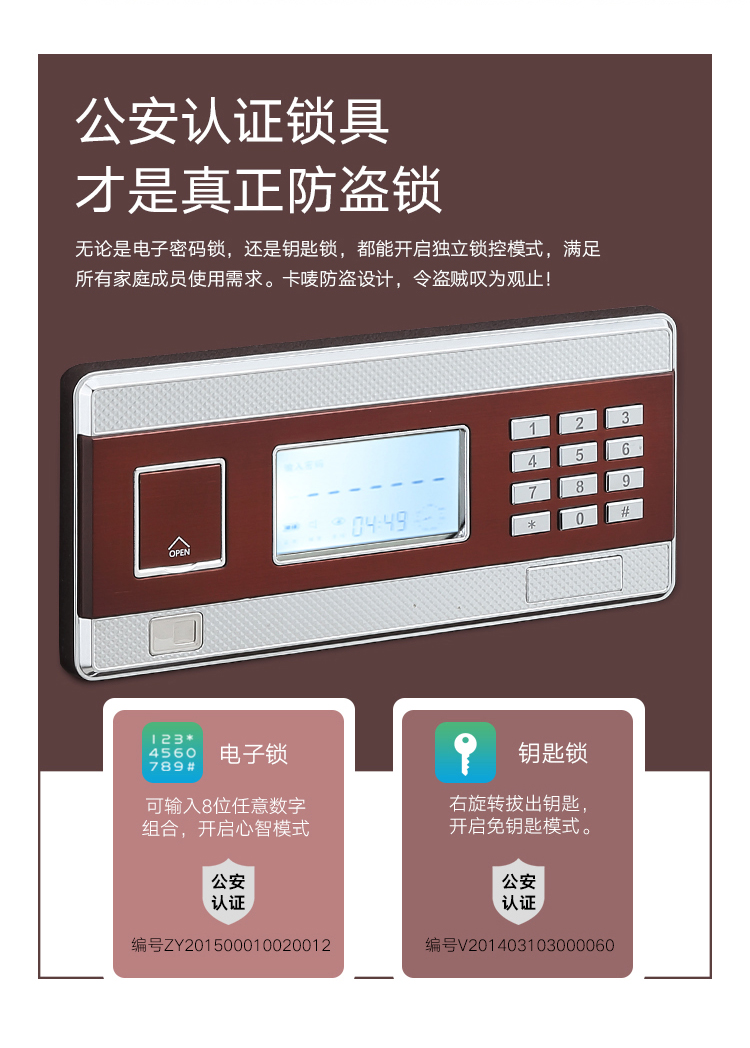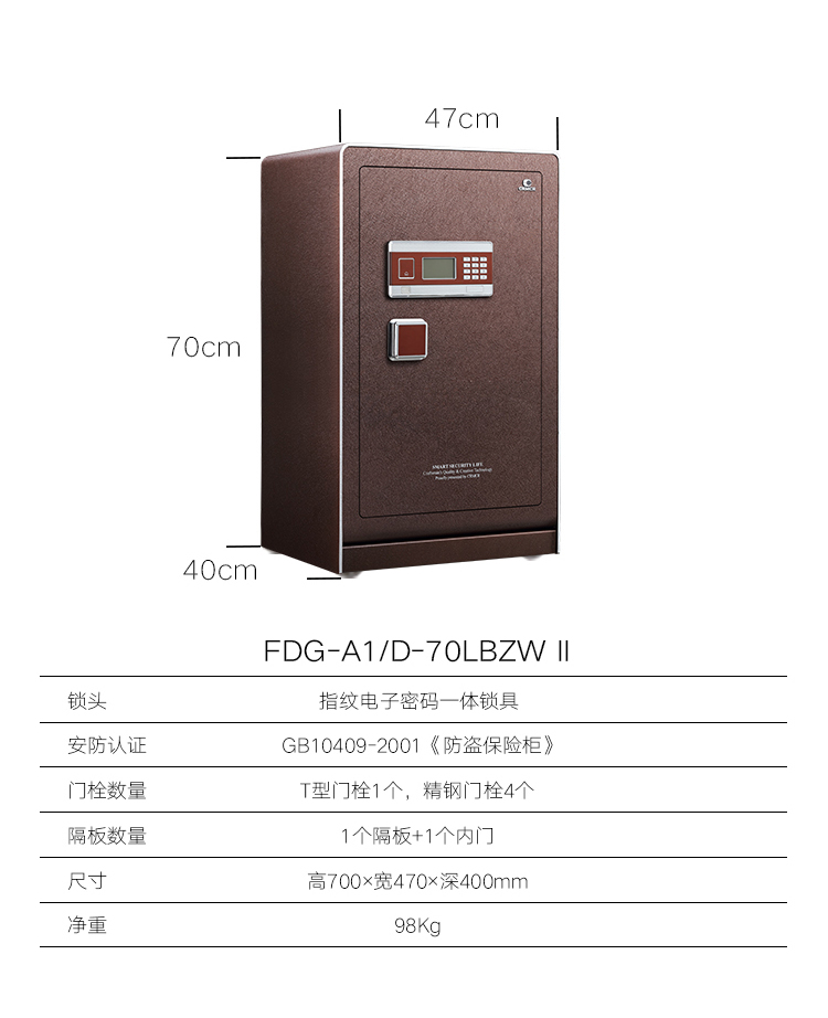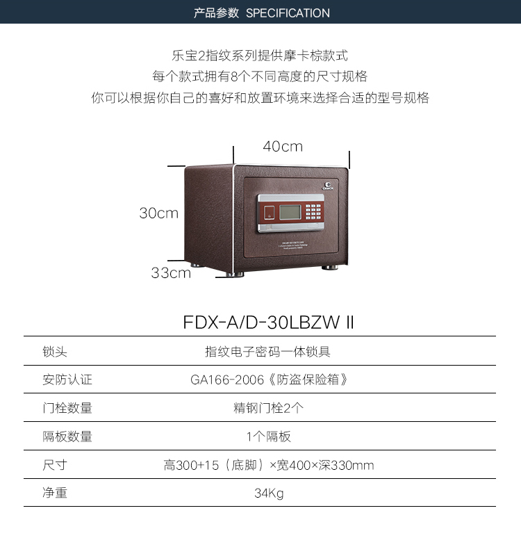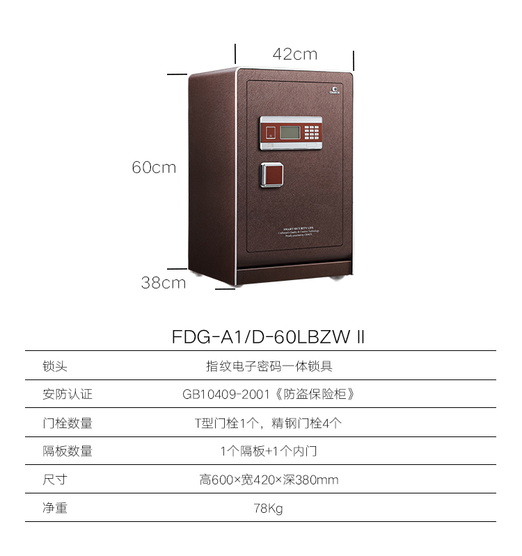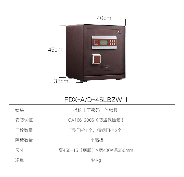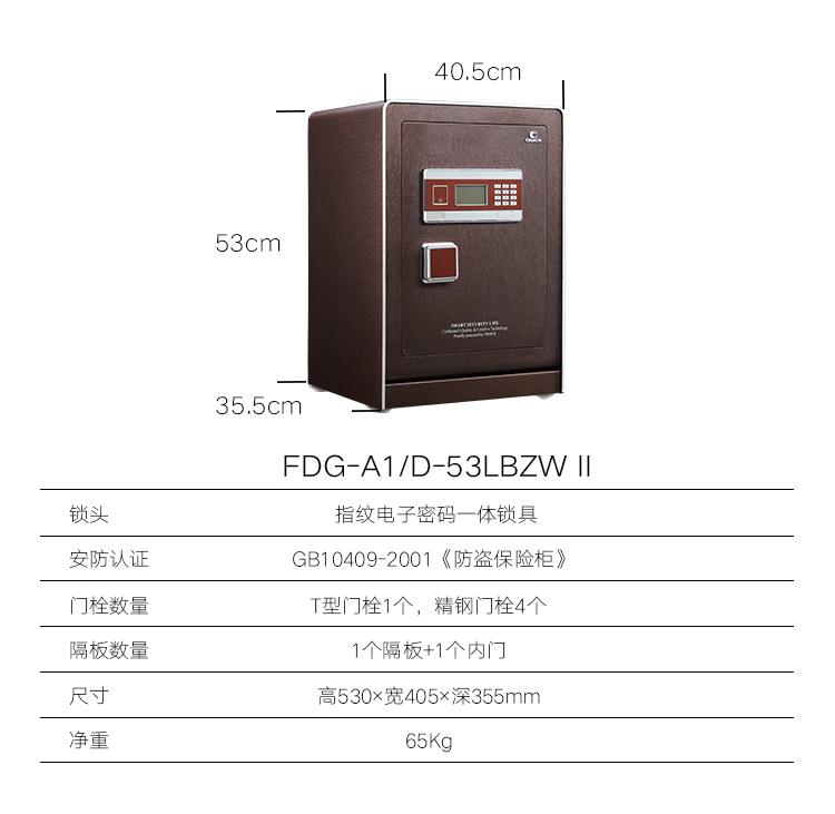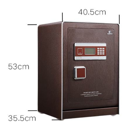 卡嘜樂(lè)寶指紋+電子密碼系列3C認(rèn)證保險(xiǎn)箱D-53LBZWII尺寸說(shuō)明:530高*405寬*355深mm(含底座) 重量:60kg