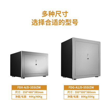 卡嘜安諾指紋系列3C認(rèn)證保險(xiǎn)箱D-55SIZW尺寸說(shuō)明:550高*500寬*380深mm(含底座) 重量:80kg