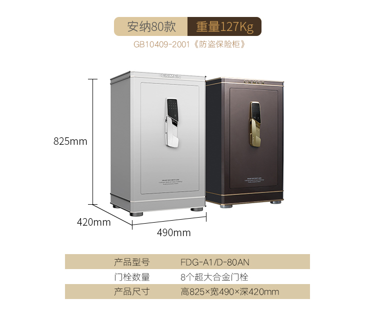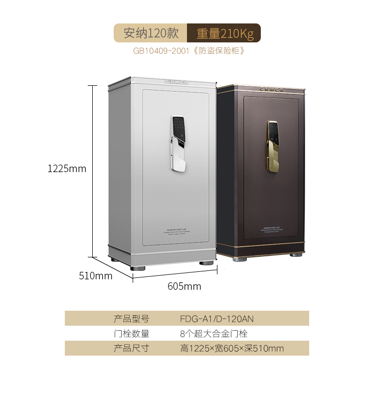 卡嘜安納指紋+電子密碼系列3C認證保險箱D-120AN 尺寸說明:1200高*600寬*510深mm(含底座) 重量:208kg
